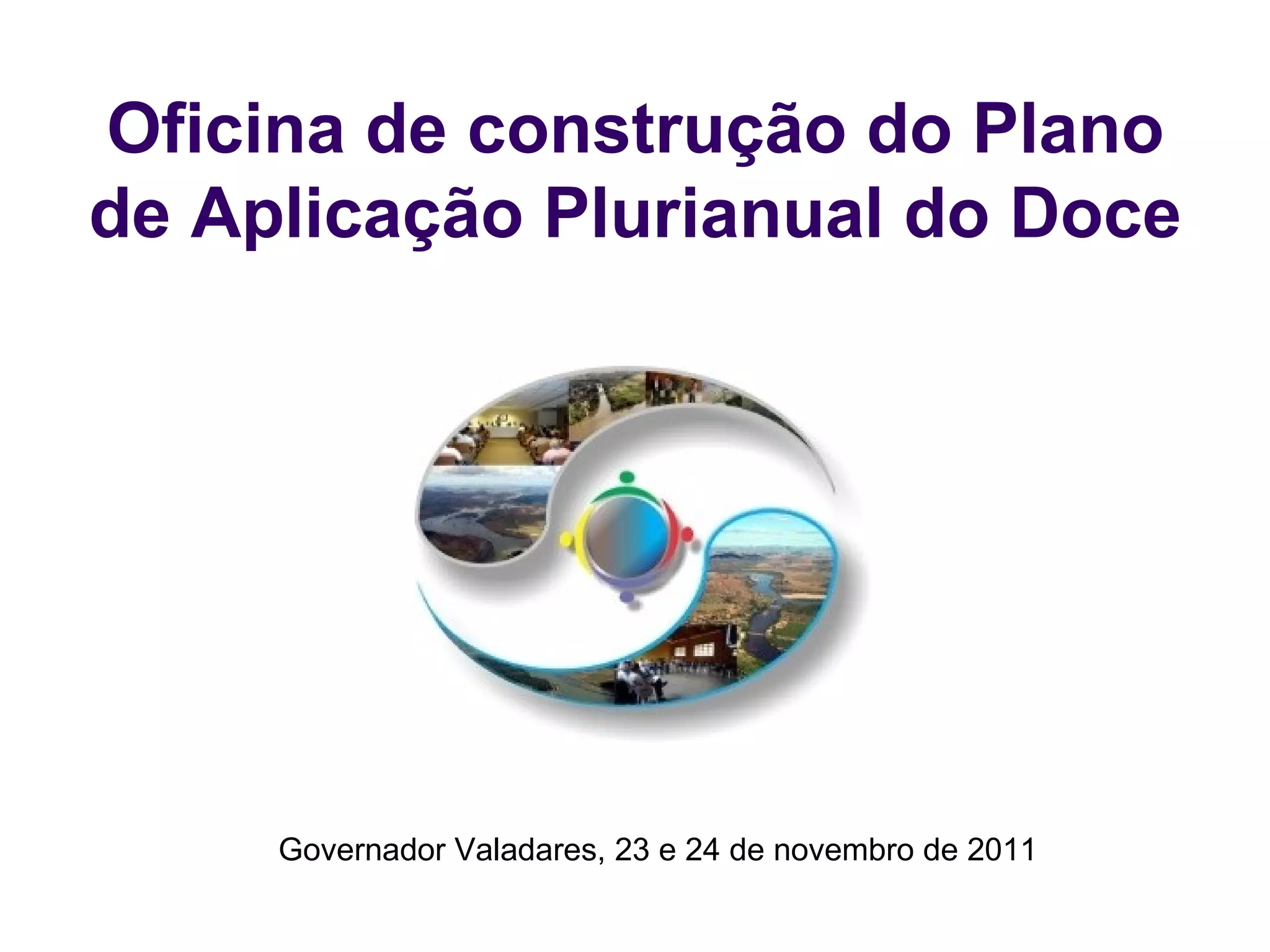 O documento descreve o Plano de Aplicação Plurianual do Doce para 2012-2015, que define metas e alocação de recursos da cobrança por uso da água na bacia do Rio Doce. O plano busca implementar programas do PIRH e PARHs priorizando estudos, projetos e ações de proteção dos recursos hídricos e educação ambiental.