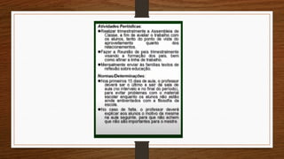 deverá ser o processo de avaliação de aprendizagem, poderá apresentar os critérios gerais e remeter