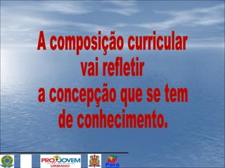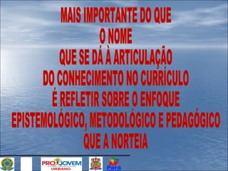 O documento discute a importância da interdisciplinaridade e transdisciplinaridade no currículo escolar, propondo que o conhecimento deve ser organizado como uma rede, não uma torre. Também descreve o projeto PROJOVEM que integra educação, qualificação profissional e ação comunitária para promover a inclusão social.
