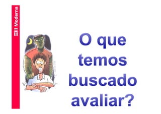 O documento discute a avaliação da aprendizagem na escola. Aborda como a avaliação deve ser um processo e não apenas classificatório, focando no desenvolvimento contínuo do aluno. Também reflete sobre como pensar uma prática avaliativa inovadora que leve em conta as mudanças conceituais e as funções docentes.
