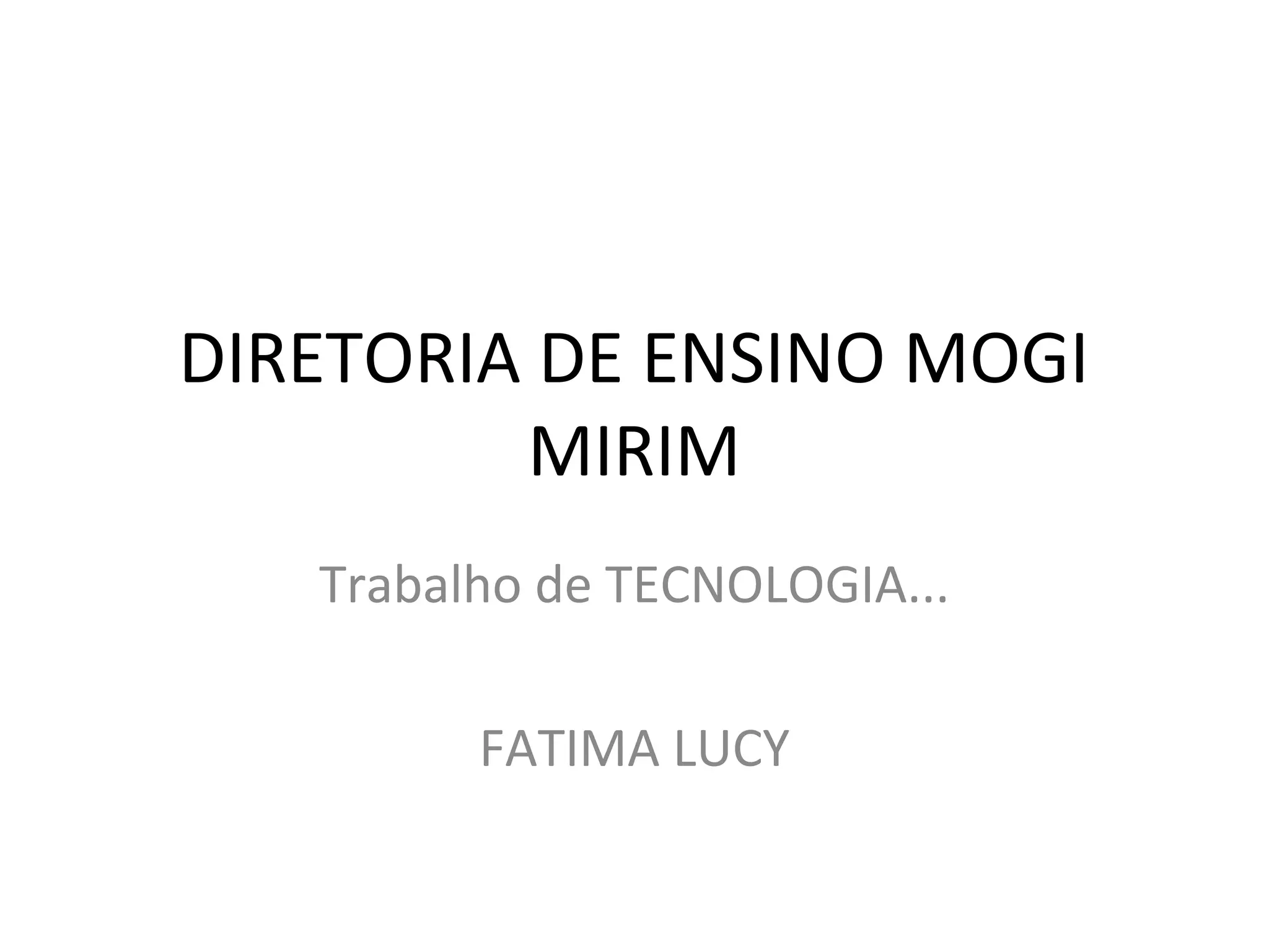 Este documento parece ser um trabalho escolar sobre tecnologia feito por uma estudante chamada Fatima Lucy para a Diretoria de Ensino de Mogi Mirim. O trabalho contém poucas informações além do título e do nome da autora.