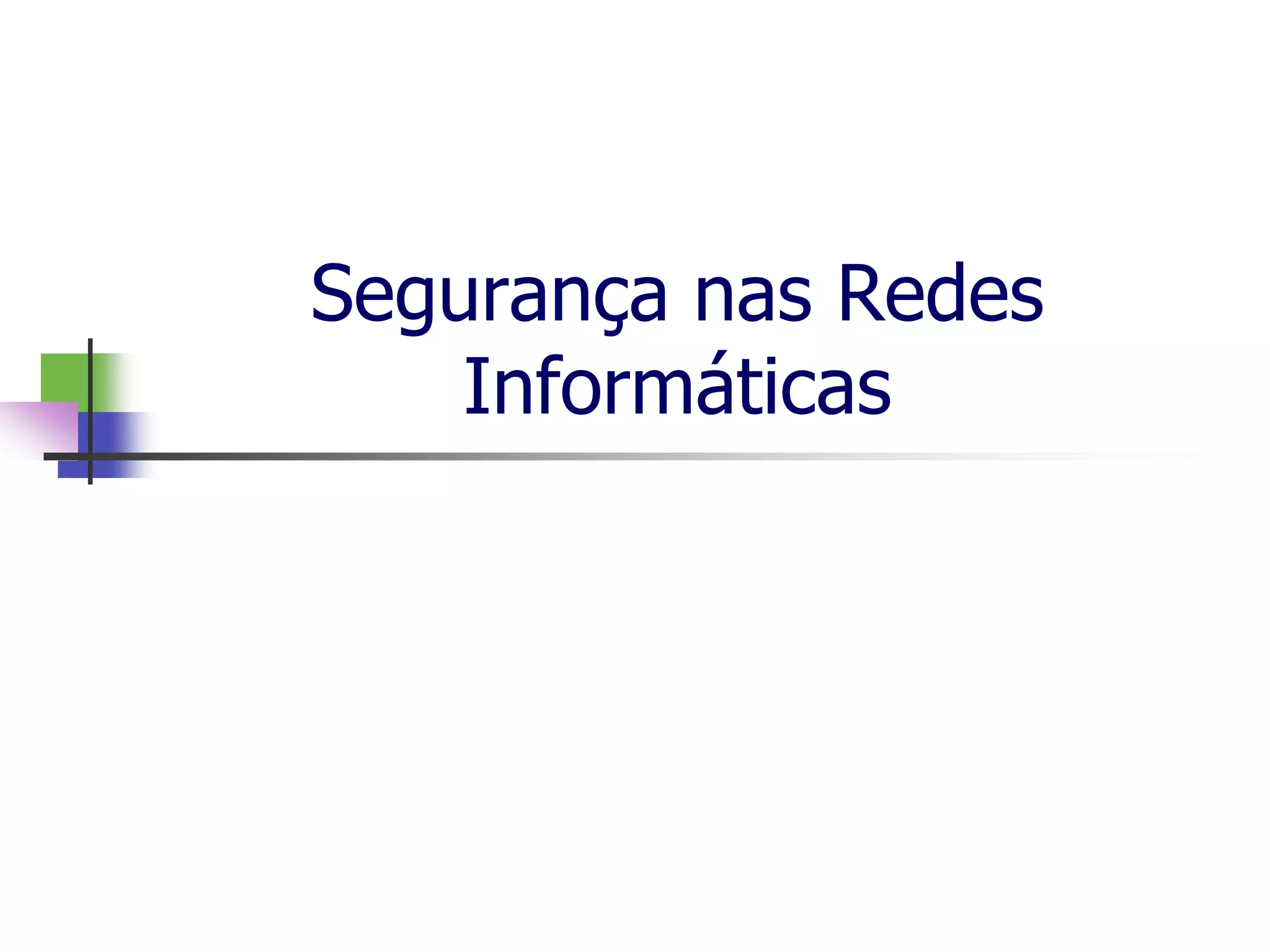 O documento discute a segurança em redes de computadores, definindo redes informáticas e seus tipos, aspectos de segurança como autenticação e confidencialidade, ameaças como vírus e ataques, e soluções como firewalls e antivírus.