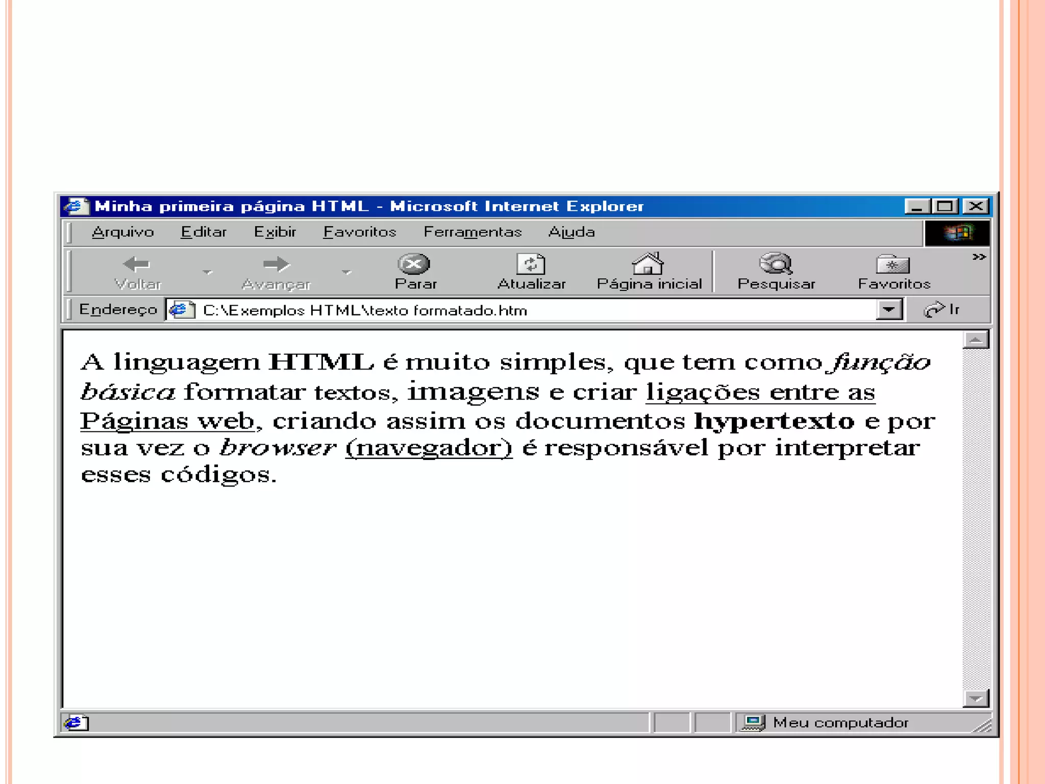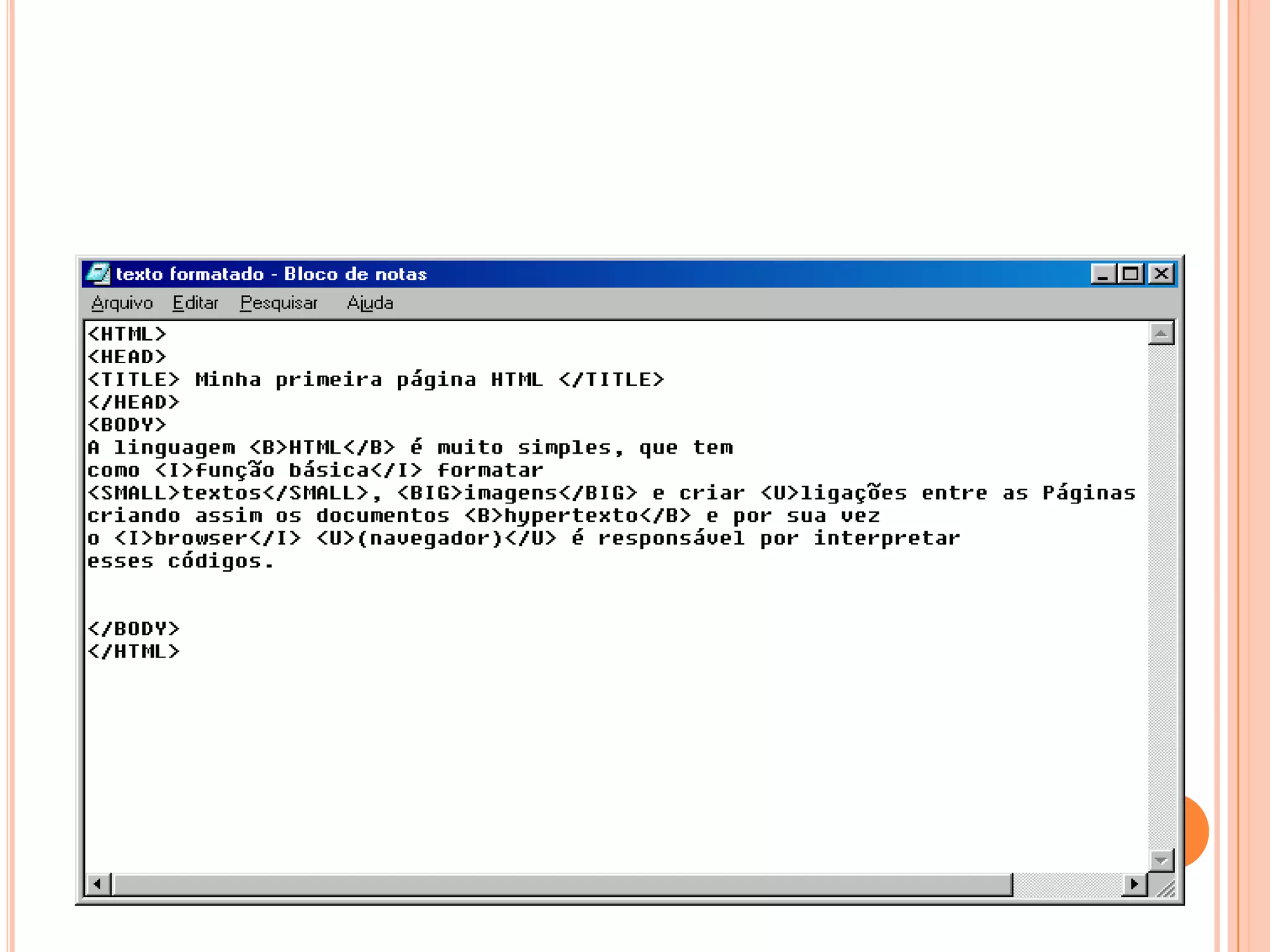O documento apresenta uma aula sobre HTML. O professor Washington Silva ensina sobre o que é HTML, tags, principais tags como <HTML>, <HEAD>, <TITLE>, <BODY>, formatação de texto com tags como <b>, <i>, <font>, entre outras. Há também exemplos práticos de códigos HTML e exercícios propostos aos alunos.
