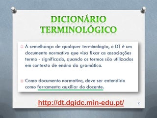 O documento apresenta os subdomínios da linguística descritiva: morfologia, classes de palavras e sintaxe. Discute também o conhecimento explícito da língua e como ele é abordado nos diferentes ciclos do ensino básico português.