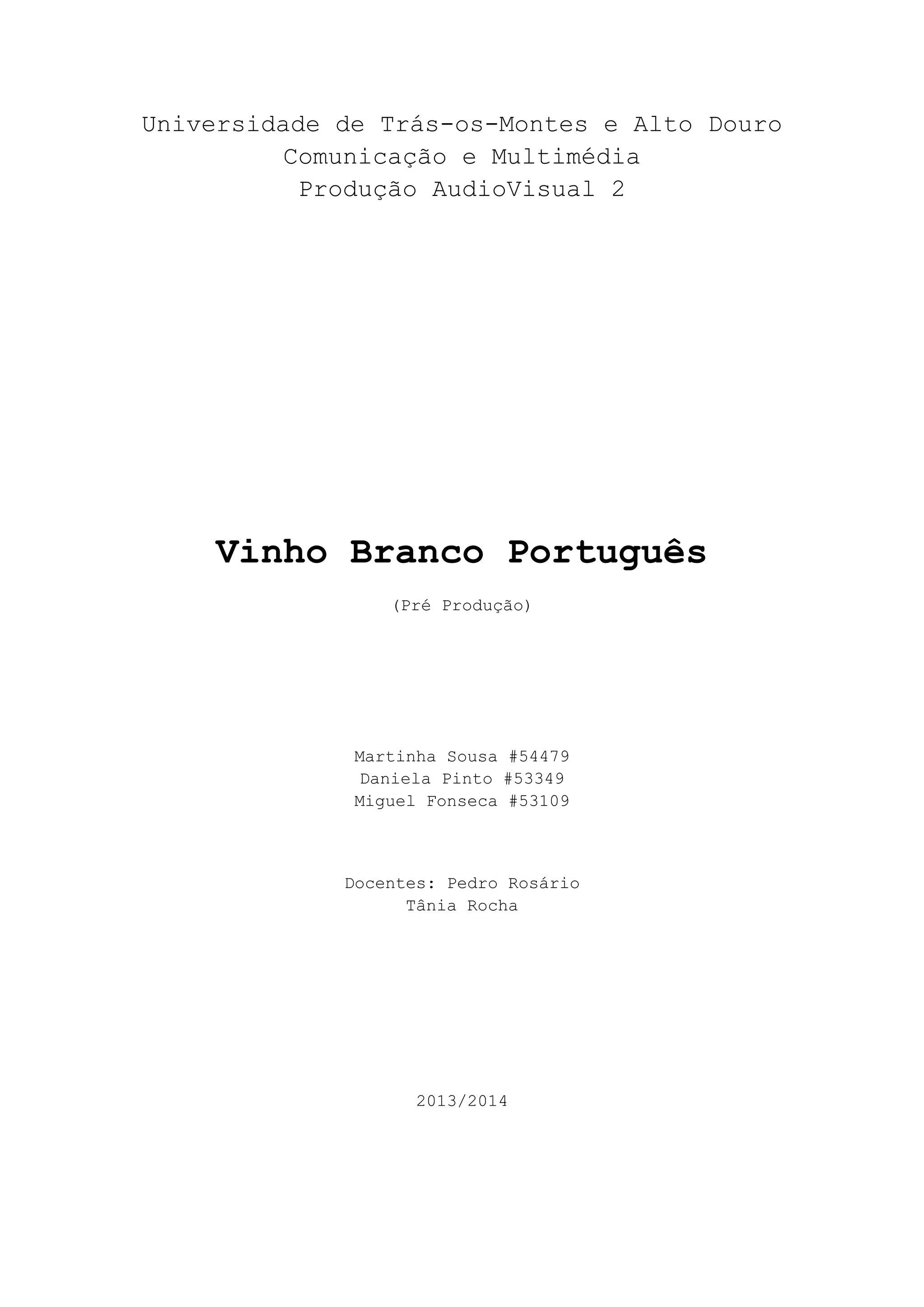O documentário promove o vinho branco português através de 3 cenas: (1) as vinhas e paisagens da região, (2) o processo de produção desde a colheita até a fermentação, (3) um apelo ao consumo moderado do vinho branco.