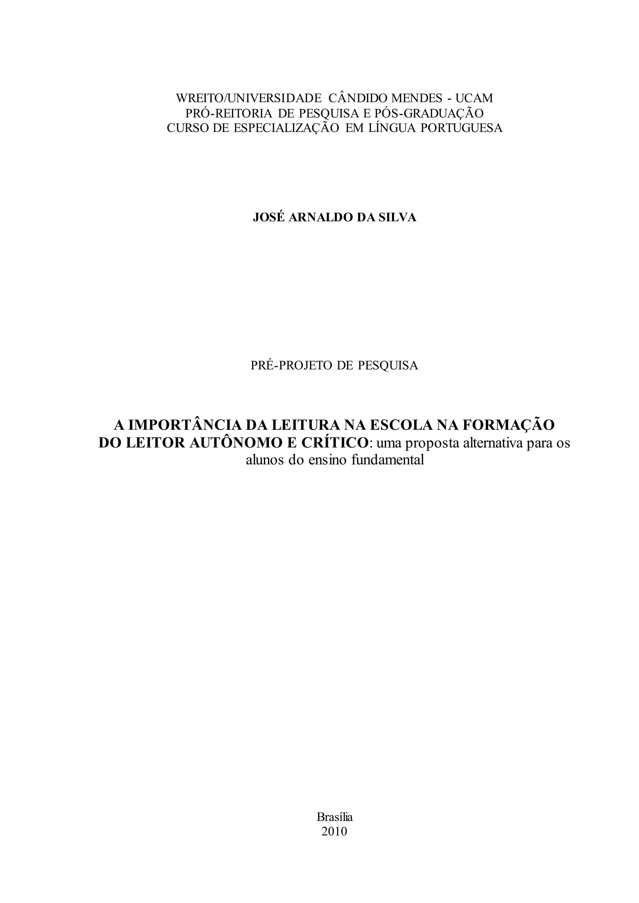 1. O documento discute a importância da leitura na formação de leitores autônomos e críticos na escola, propondo uma abordagem alternativa para alunos do ensino fundamental.