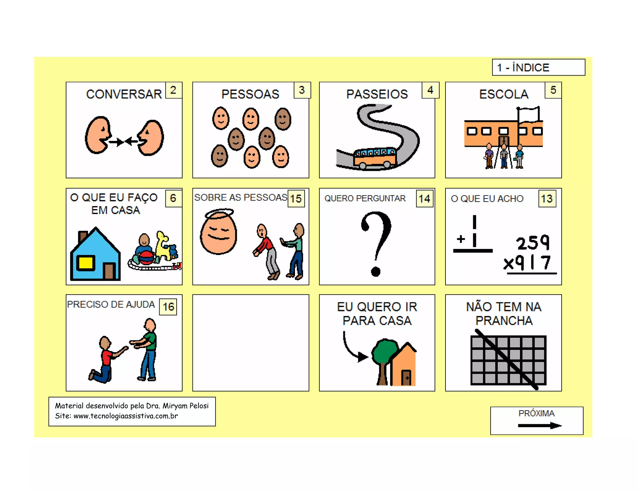 O documento repete várias vezes que o material foi desenvolvido pela Dra. Miryam Pelosi e fornece o endereço de seu site sobre tecnologia assistiva.