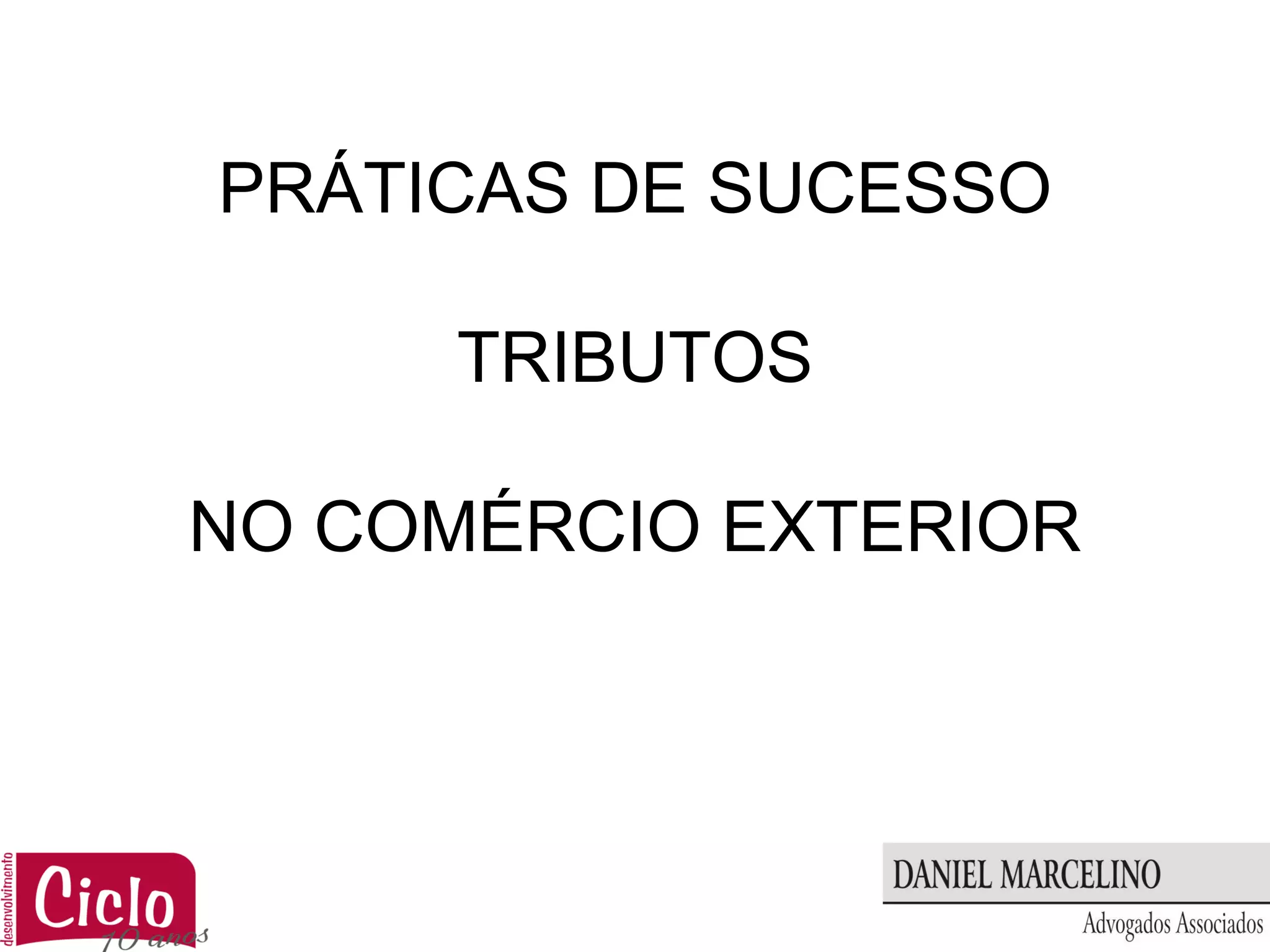 O documento discute as práticas de comércio exterior e tributação no Brasil. Aborda os riscos de divergências e fraudes no comércio exterior, como classificação incorreta de mercadorias e ocultação de informações. Também trata da responsabilidade tributária objetiva dos importadores e das defesas possíveis em caso de infrações, como erro ou simulação. Por fim, discute formas de consultar previamente as autoridades para evitar penalidades.