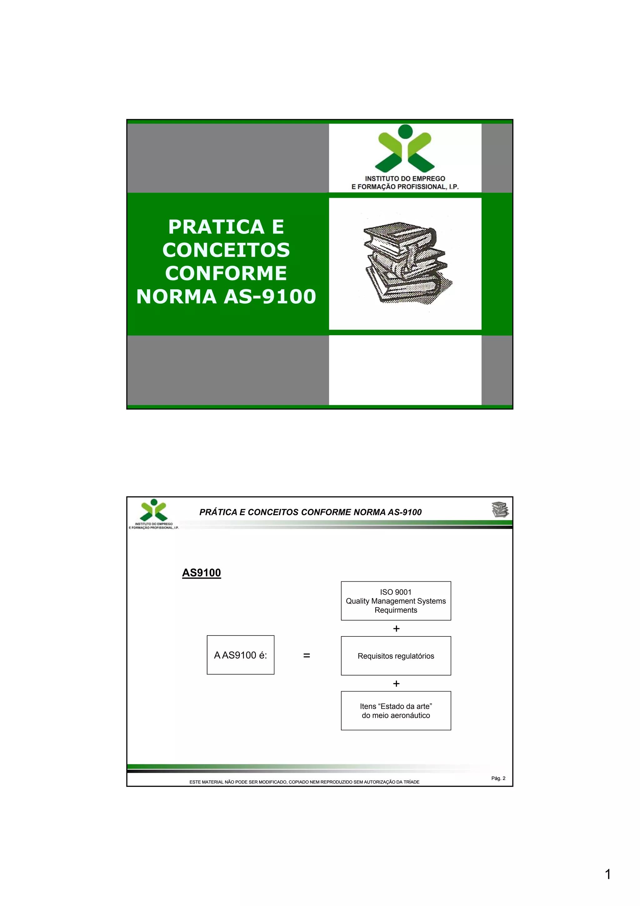O documento discute os principais conceitos e requisitos da norma AS-9100 para sistemas de gestão da qualidade, incluindo a melhoria contínua baseada no ciclo PDCA, a importância dos processos, e os requisitos específicos para a responsabilidade da administração, gestão de recursos e realização do produto.