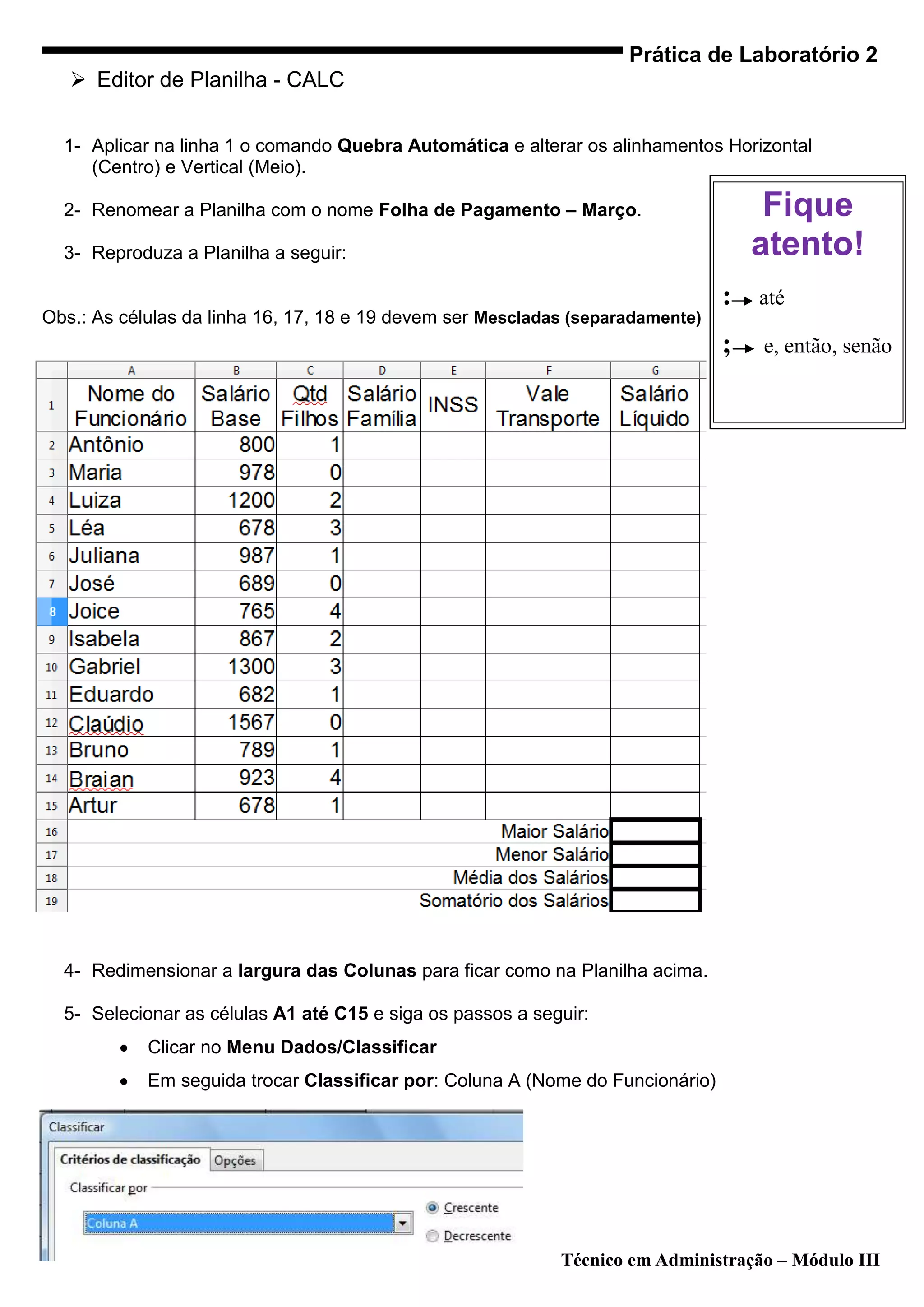 3- Reproduza a Planilha a seguir: atento!