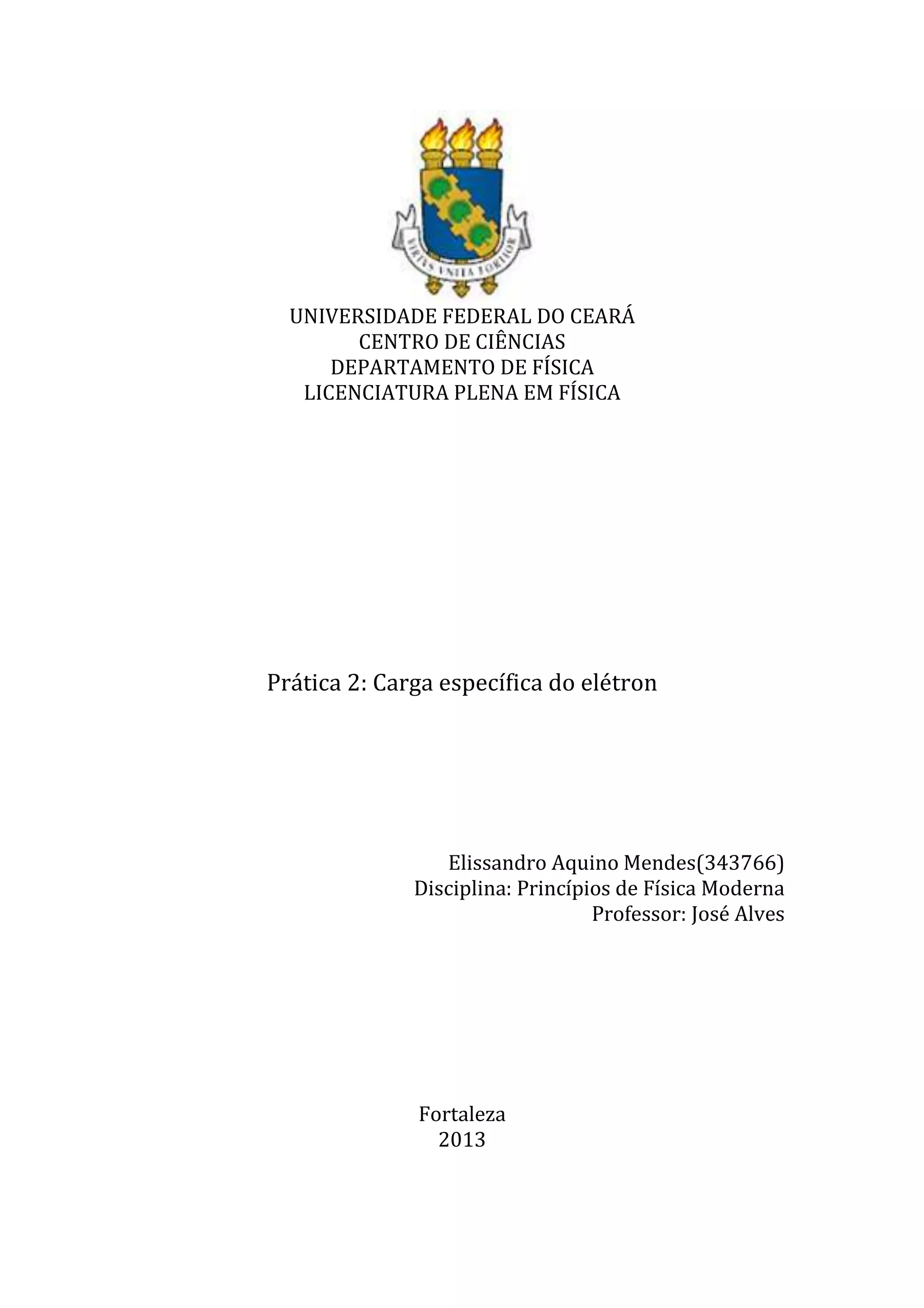 Este relatório descreve um experimento para determinar a razão carga-massa do elétron usando um tubo de raios catódicos submetido a campos elétrico e magnético cruzados. Medições da razão carga-massa foram realizadas variando a tensão aplicada e a corrente nas bobinas de Helmholtz. O valor médio obtido experimentalmente foi 7,21 x 1010 C/Kg, com um desvio de 67% em relação ao valor teórico.