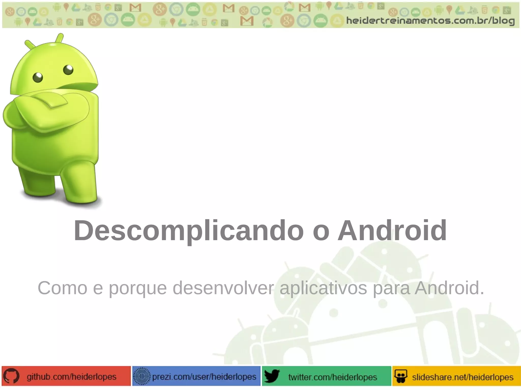 O documento discute o desenvolvimento de aplicativos para Android, abordando sua história, arquitetura e as vantagens da plataforma. Apresenta o ambiente de desenvolvimento, estruturas de projetos e conceitos como atividades, serviços e provedores de conteúdo, além de enfatizar a importância do mercado Android. O texto também orienta sobre a publicação de aplicativos no Google Play e menciona algumas desvantagens relacionadas à fragmentação e concorrência.