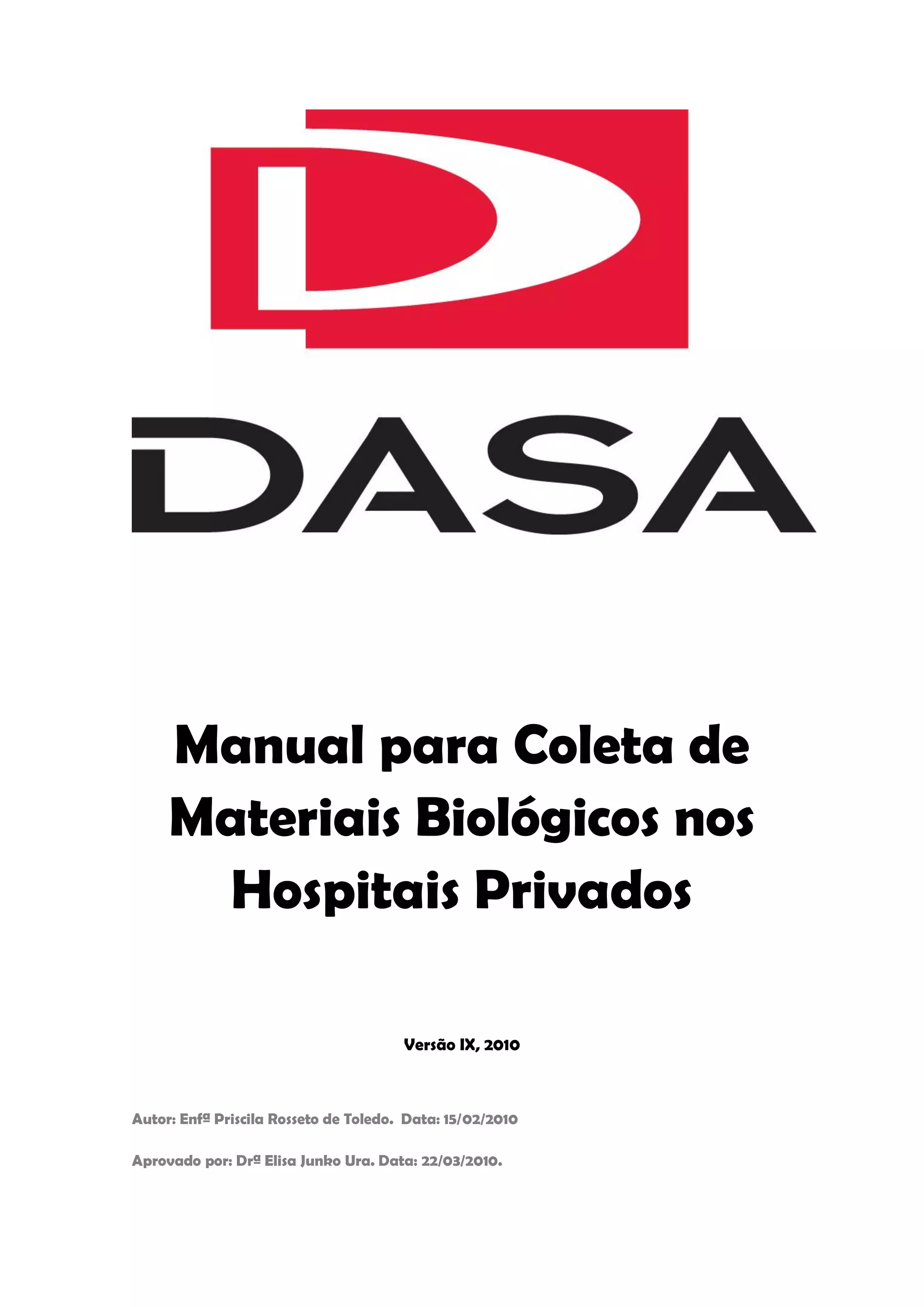 Manual para Coletade Materiais Biológicos nos Hospitais Privados