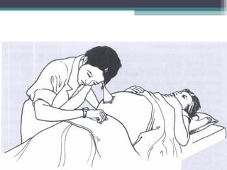 O documento descreve os objetivos e procedimentos do pré-natal, incluindo acolher a gestante desde o início da gravidez, assegurar o nascimento de uma criança saudável e garantir o bem-estar materno. Detalha a frequência das consultas pré-natais, exames necessários, cálculo da idade gestacional e data provável do parto, além de abordar possíveis queixas e complicações durante a gravidez.
