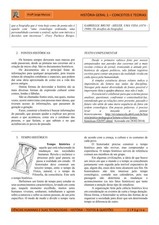 O documento discute conceitos fundamentais da história como ciência, incluindo: