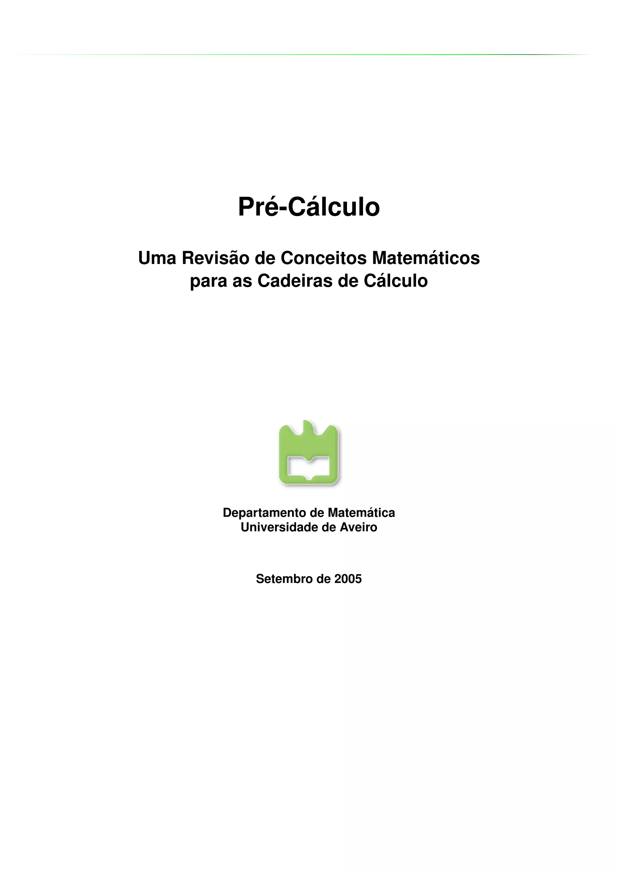 1) O documento é um guia de revisão de conceitos matemáticos pré-requisitos para as disciplinas de Cálculo lecionadas no Departamento de Matemática da Universidade de Aveiro.