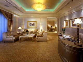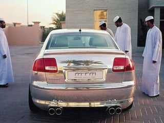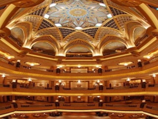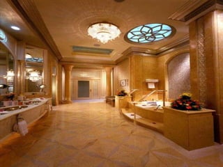 Este documento descreve uma luxuosa casa que pertence ao Sultão Al Nahyan da família real dos EAU, notando que não é um hotel e inclui detalhes como um Audi A8 feito de prata verdadeira. O documento também pergunta retoricamente por que o petróleo está caro, possivelmente sugerindo que a riqueza do dono da casa vem da indústria do petróleo.