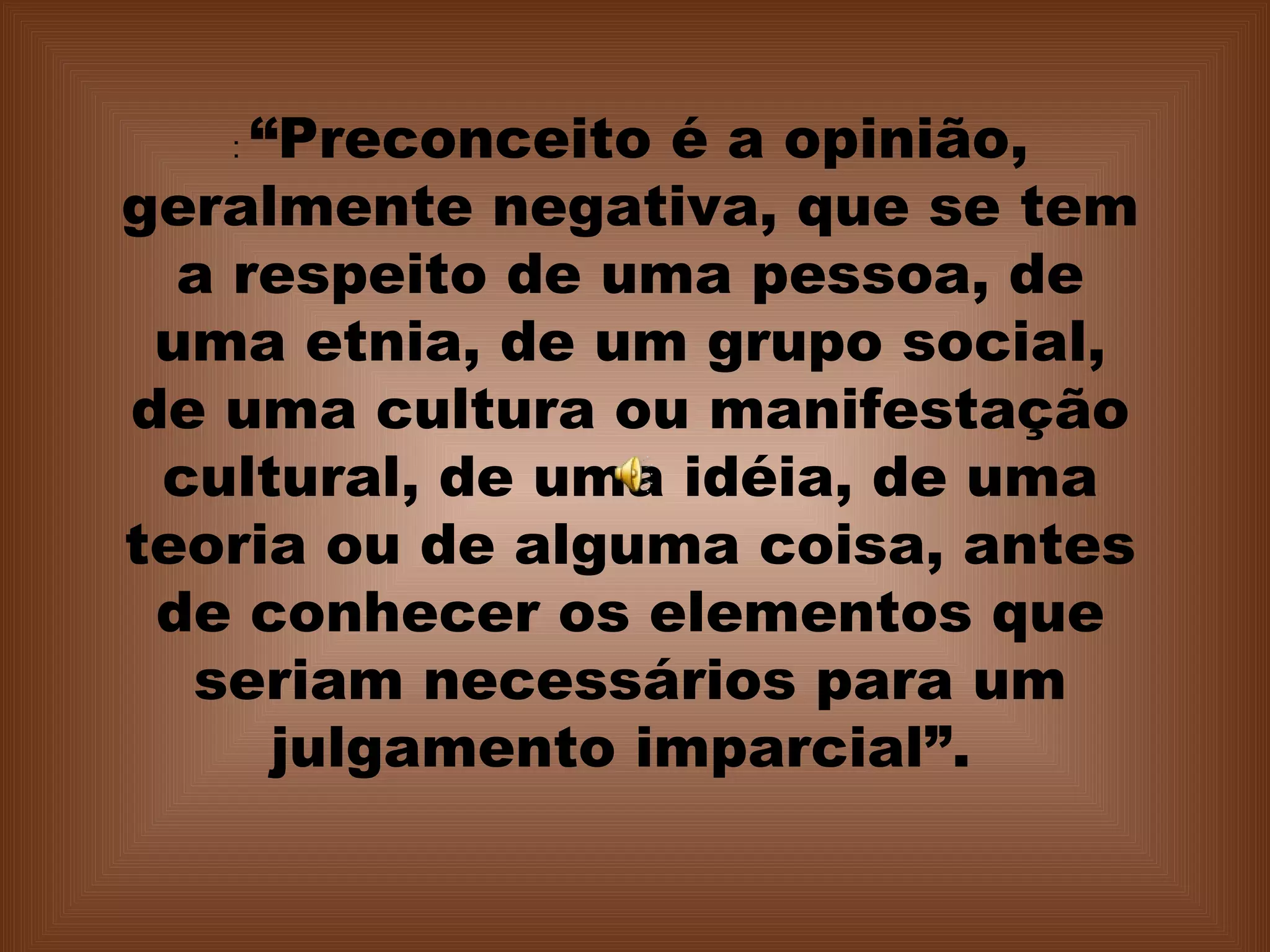 O documento discute vários tipos de preconceito, incluindo preconceito estético, intelectual, racial, sexual e religioso. Argumenta que o preconceito gera mais preconceito e nos impede de viver em paz e felicidade, enquanto o amor pode unir as pessoas além de suas diferenças.