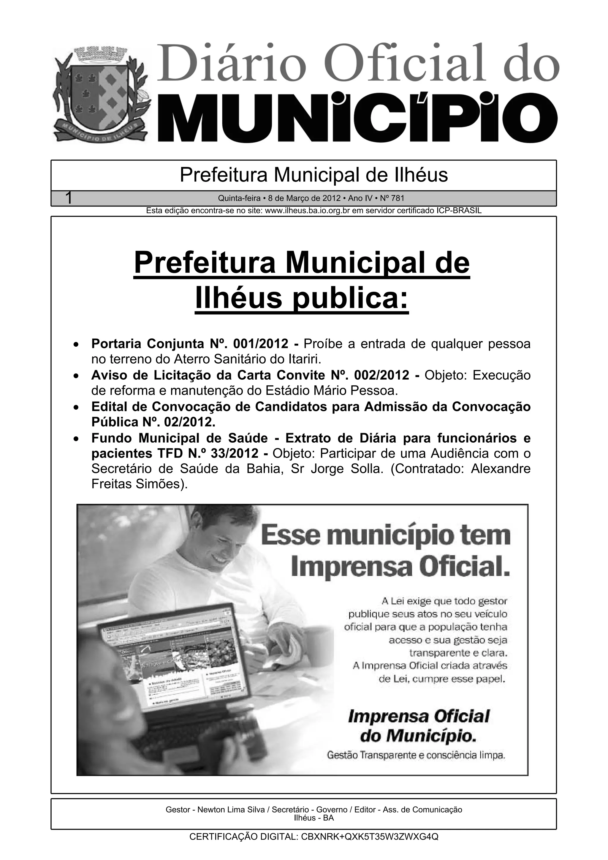 1) A Prefeitura Municipal de Ilhéus publica novas portarias e editais.