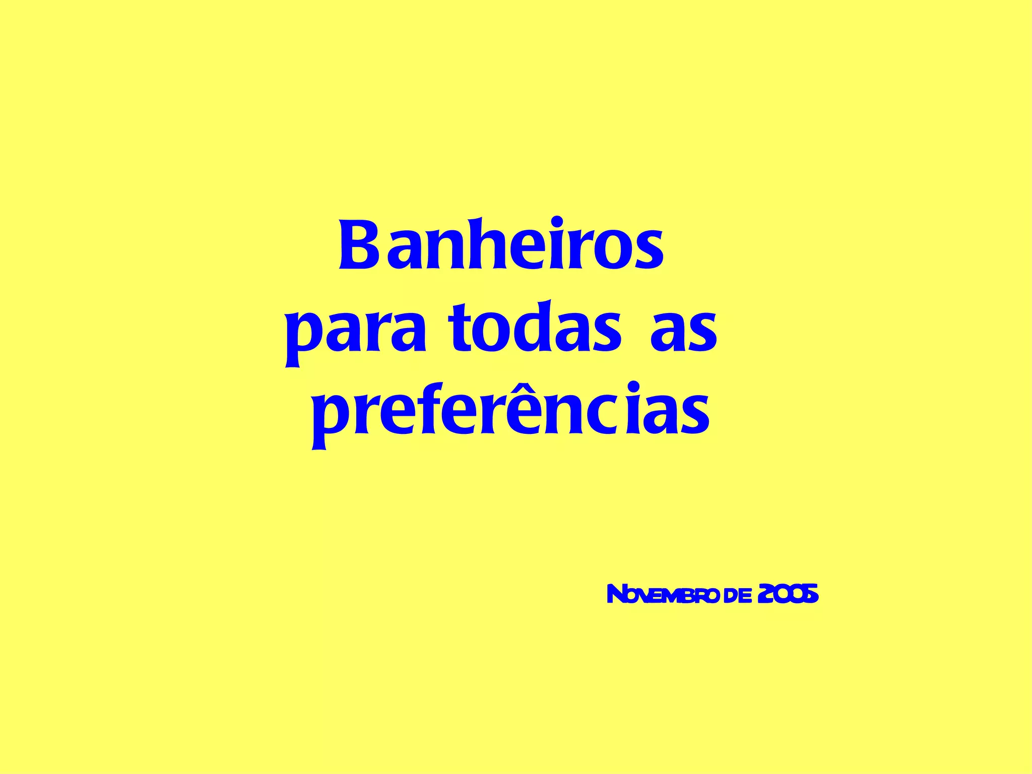 O documento lista vários tipos de banheiros para atender diferentes preferências e necessidades de usuários, incluindo banheiros para quem precisa com urgência, exibicionistas, pessoas com deficiência de tempo, marinheiros, jogadores, realeza, pessoas que vivem em movimento e casais românticos.