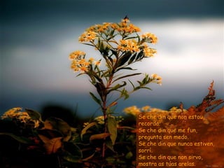 O poema fala sobre como seguir adiante a pesar das dificuldades e dos que duvidan da fé ou esperança. Aconselha o leitor a recordar, preguntar, sorrir, mostrar sonhos e continuar caminhando mesmo quando a vida dói ou quando outros digam que Deus não está presente ou já não serve mais. Pede para escutar, seguir pegadas, descobrir a aliança e proclamar o triunfo da fé.