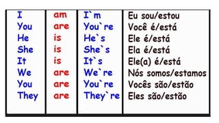 O documento explica o uso do Present Continuous em inglês. Este tempo verbal é usado para descrever ações que estão acontecendo no momento da fala. Ele é formado pelo verbo auxiliar "to be" no presente simples mais o verbo principal na forma "-ing". Exemplos ilustram como formar frases affirmativas, negativas e interrogativas no Present Continuous.