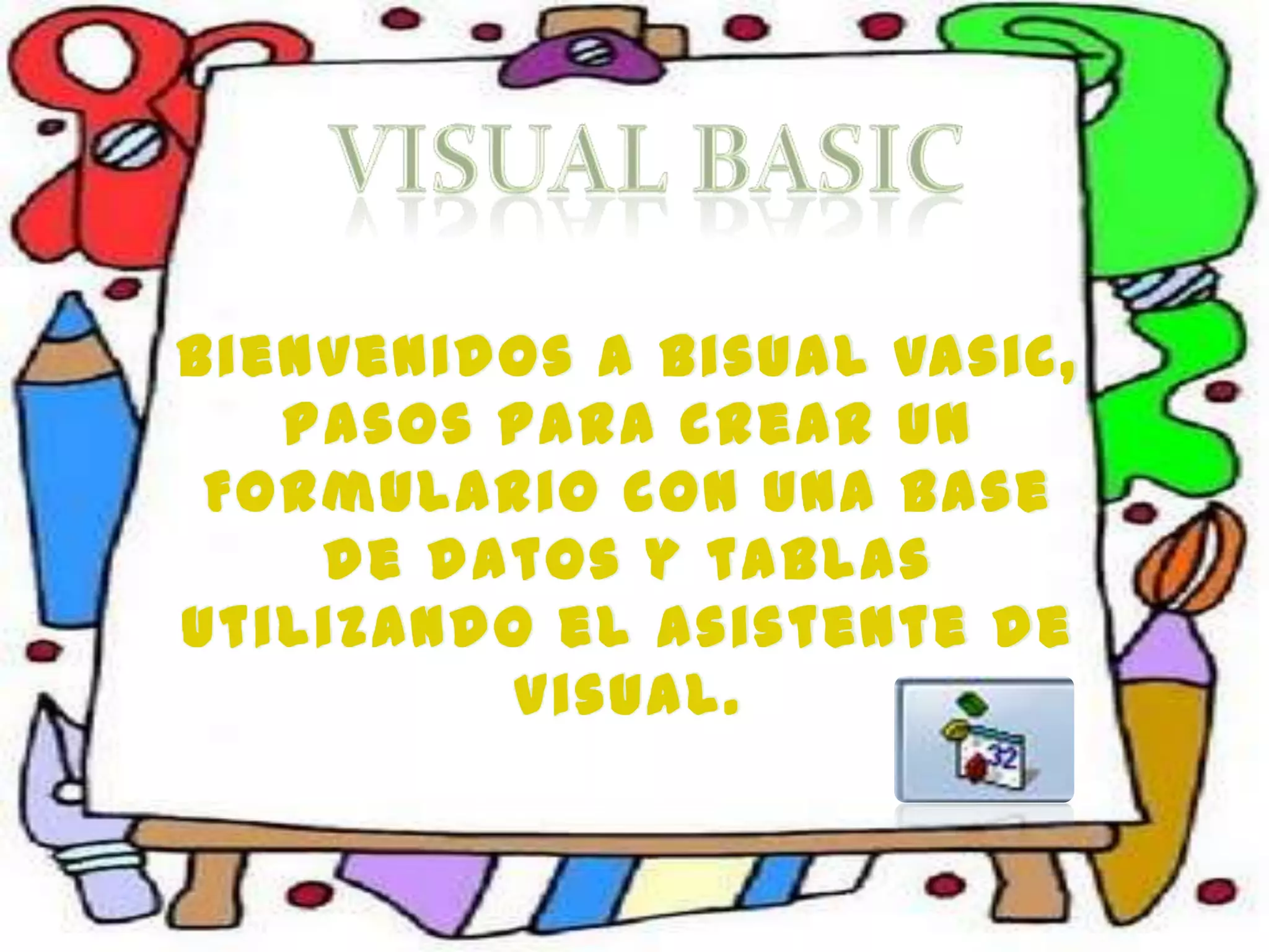 O documento fornece instruções passo a passo para criar um formulário com uma base de dados e tabelas no Visual Basic, incluindo como inserir campos, botões de comando e uma tabela de banco de dados para armazenar dados do formulário.