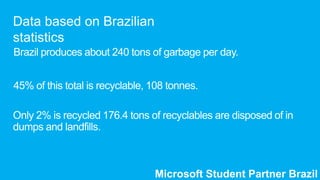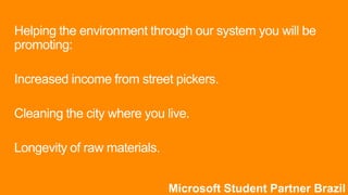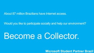 A plataforma permite que os usuários compartilhem suas ações de coleta de lixo com amigos no Facebook e outras redes sociais integradas para motivar colegas e colaborar com o meio ambiente de forma divertida e moderna.