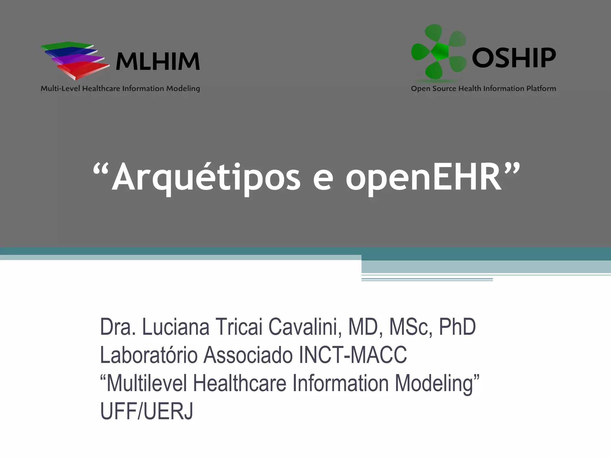 O documento discute os desafios atuais dos sistemas de informação em saúde, enfatizando a necessidade de uma modelagem multinível que permita a interoperabilidade e a eficácia no tratamento de dados. A autora, Dra. Luciana Tricai Cavalini, destaca que a saúde enfrentará uma demanda crescente devido ao envelhecimento da população, e que a qualidade da informação nos sistemas é crucial para melhorar o atendimento. A implementação de arquétipos e a utilização de ferramentas de software livre são sugeridas como soluções para melhorar a eficiência e a segurança no setor de saúde.