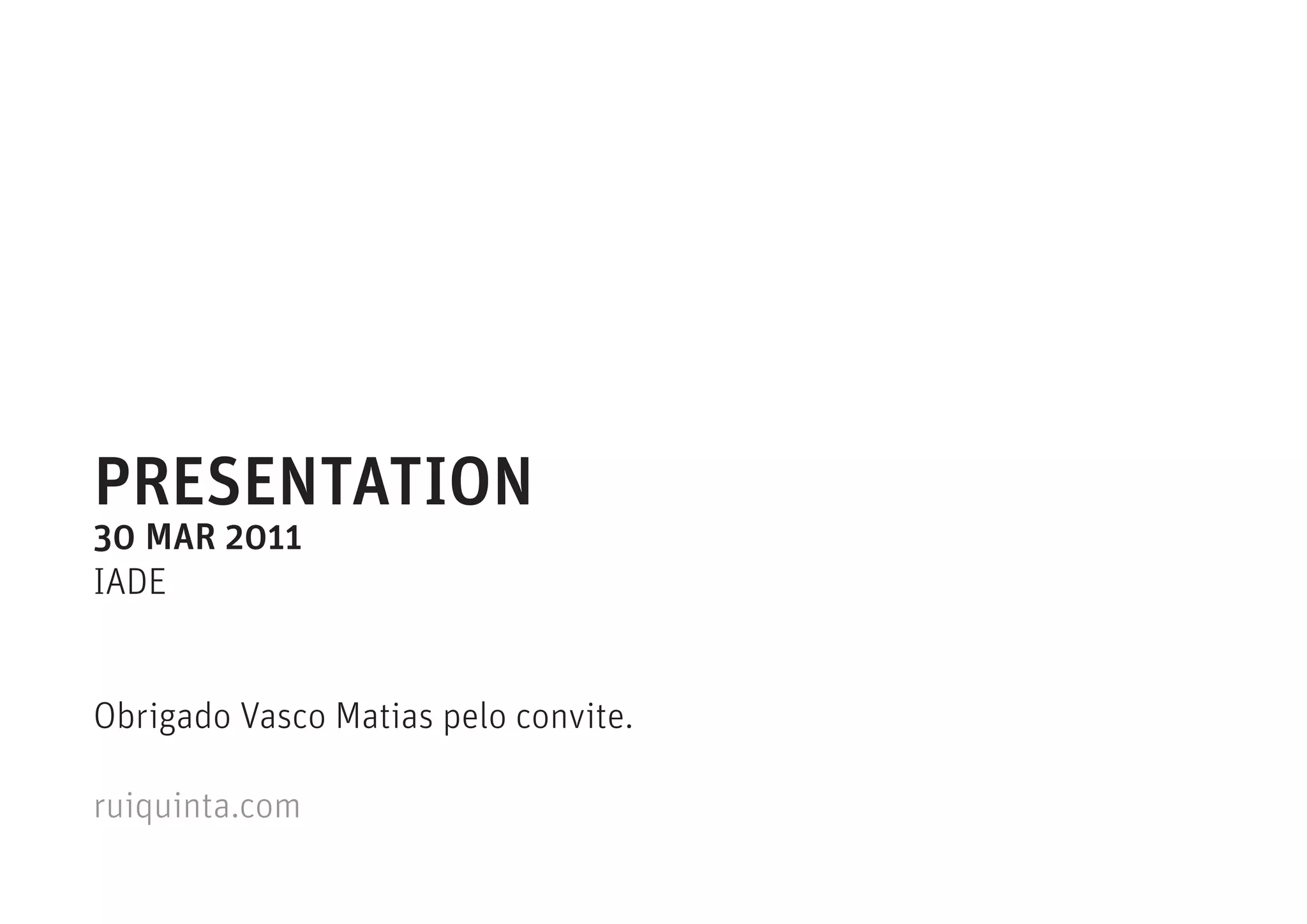 Rui Quinta apresenta uma analogia entre partes do corpo e habilidades de um designer, como pensar criticamente com o cérebro, observar detalhes com os olhos, ouvir outros com atenção, e criar com as mãos. Ele encoraja os designers a partilhar seu trabalho com não-designers e ver com os olhos dos clientes.