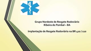 O documento propõe a implantação de um serviço de resgate rodoviário na BR 410/110 entre as cidades de Tucano e Antas, na Bahia. O projeto visa melhorar o atendimento prestado às vítimas de acidentes nas rodovias locais por meio de uma equipe treinada e equipada com ambulância. O texto descreve os componentes, apoios, funcionamento, licitação e normas regulatórias do projeto.