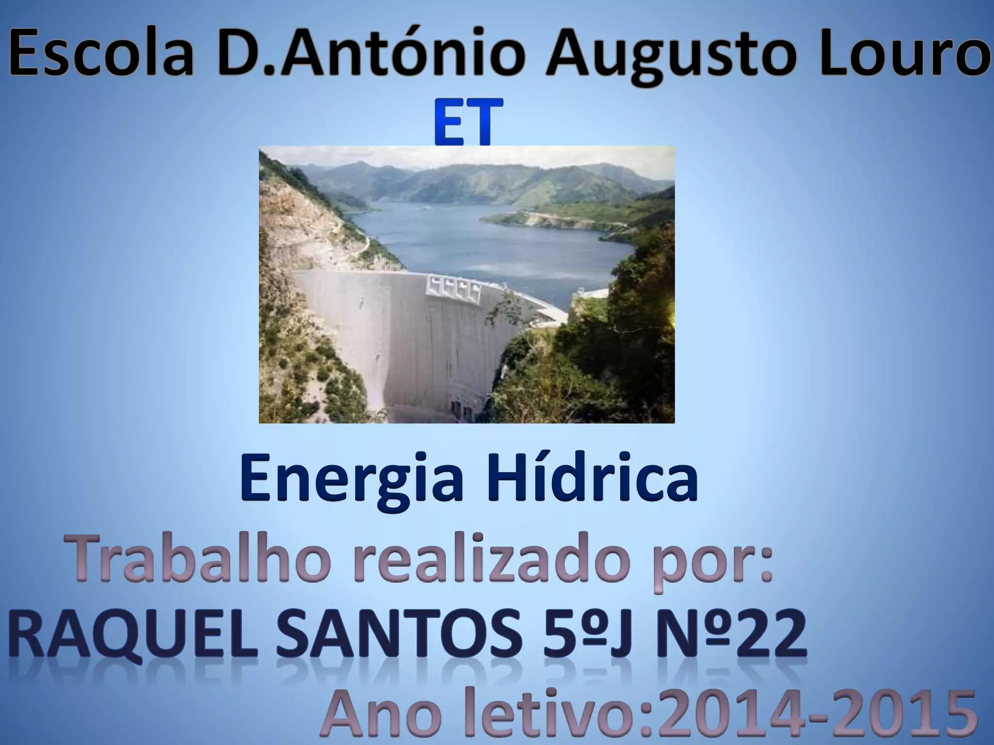 A energia hídrica ou hidráulica é uma energia renovável obtida a partir da energia potencial da água. Ao longo da história, a energia hídrica foi usada para moer cereais e gerar eletricidade. Em Portugal, cerca de 30% da eletricidade é produzida por energia hídrica, principalmente no norte e centro do país.