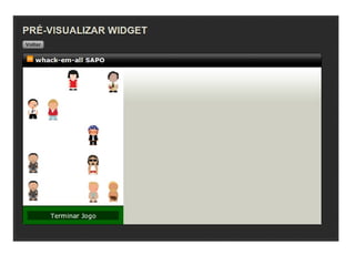 Este documento fornece informações sobre como desenvolver widgets para dispositivos móveis e participar no concurso de widgets da TMN. Ele explica o que são widgets web, como usar o portal SAPO Widgets para desenvolver e submeter widgets, e fornece exemplos de widgets bem-sucedidos.