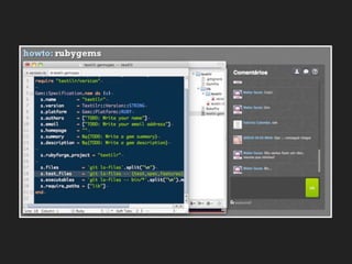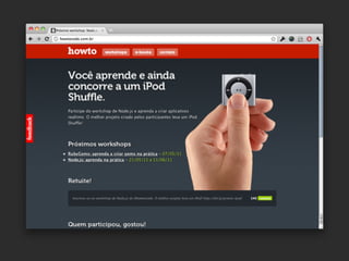 O documento apresenta o sistema de treinamento online Presentta construído com Node.js, Flash e outras tecnologias. Ele discute como Node.js permite a comunicação entre Flash, JavaScript do lado do cliente e do servidor, e fornece exemplos de código para chat e servidor HTTP usando Node.js.