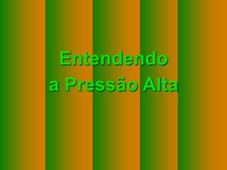 O documento explica o que é pressão alta, como ocorre a circulação do sangue e como a pressão é medida. A pressão alta ocorre quando as artérias ficam estreitas, forçando o coração a bombear com mais pressão. Remédios dilatam as artérias, mas a causa do estreitamento ainda é desconhecida. Controle de peso, exercícios e dieta podem ajudar a evitar ou controlar a pressão alta.