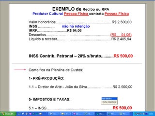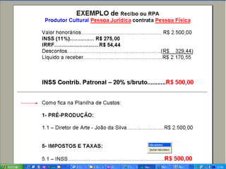 O documento fornece instruções sobre como prestar contas de projetos culturais financiados pela Lei de Incentivo à Cultura do Rio Grande do Sul. Detalha os requisitos para comprovantes financeiros como notas fiscais e recibos, além de informações sobre retenções de impostos e prazos para entrega da prestação de contas.