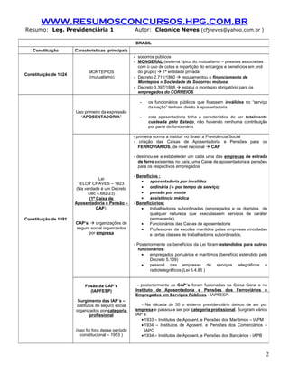 O documento traça a evolução histórica da previdência social no Brasil e no mundo, desde os primeiros sistemas de socorros públicos e mutualismo no Brasil Império até a criação do sistema de seguridade social na Constituição de 1988. Destaca os principais marcos como a primeira lei de aposentadoria para ferroviários em 1923 e a criação do INPS na década de 1960 para unificar os institutos previdenciários.