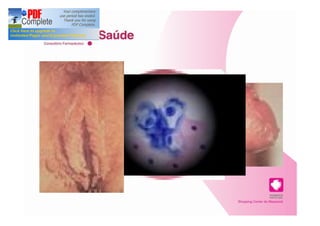 Este documento discute o Papilomavírus Humano (HPV) e as doenças associadas, incluindo o câncer do colo do útero. O HPV é uma infecção viral comum transmitida sexualmente que pode causar verrugas genitais benignas ou lesões pré-cancerosas e câncer no colo do útero. A vacinação contra HPV é recomendada para prevenir estas doenças, e exames ginecológicos regulares também são importantes para detecção precoce de lesões.