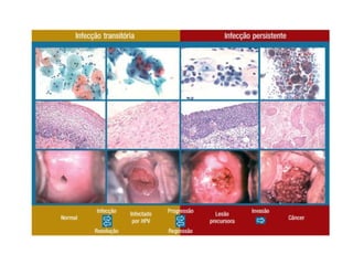 O documento discute vários tipos de infecções e alterações vaginais, incluindo tricomoníase, candidíase, cervicite e HPV. Também fornece detalhes sobre exames Papanicolau, sintomas comuns e tratamentos para essas condições.