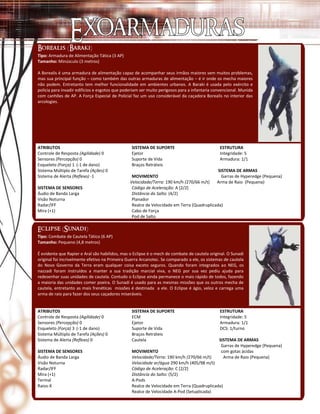 A Borealis é uma pequena armadura de alimentação tática usada pela polícia para invadir edifícios e esgotos urbanos, equipada com garras e canhão de AP. O Eclipse é um rápido mecha de combate tático usado para missões frenéticas, armado com garras ácidas e arma de raio. O Malach é um grande mecha de armas pesadas preferindo terrenos baixos, equipado com dispersor, lâminas, canhão de plasma e tentáculos.