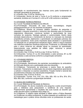 semestres respectivos. Na Reumatologia as mesmas serão subdivididas em 2