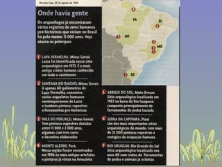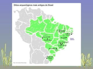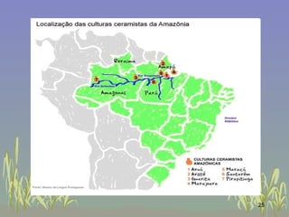 O documento descreve as principais tradições pré-históricas no Brasil, incluindo a Tradição Humaitá, caracterizada por instrumentos maciços; a Tradição Umbu, caracterizada por pontas de projétil; os povos dos sambaquis, que produziam colares de conchas; e a Cultura Marajoara, uma sociedade amazônica hierárquica entre 1000 a.C. e 1000 d.C. que produzia urnas funerárias elaboradas.