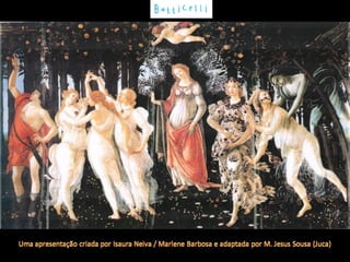 O quadro "Primavera" de Botticelli, pintado em 1480, representa uma alegoria da chegada da Primavera através de figuras mitológicas como Vénus, Cupido, as Três Graças, Zéfiro, Flora e Mercúrio.