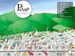 O documento apresenta o empreendimento Prime em Nova Iguaçu, que oferece apartamentos de 4 quartos com 3 suítes e 3 quartos com 1 suíte, destacando sua localização privilegiada e áreas comuns decoradas por renomados profissionais. O projeto inclui dois edifícios, 112 unidades habitacionais e uma infraestrutura completa, como portaria, concierge e área de lazer. É enfatizado que no Prime, os moradores desfrutam de privacidade, segurança e opções de plantas que se adequam a diferentes estilos de vida.