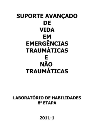 Este documento descreve um programa de treinamento em suporte avançado de vida para emergências traumáticas e não traumáticas. O programa inclui aulas teóricas e práticas no laboratório de habilidades para revisar e aprofundar os conceitos de atendimento de emergência. Os tópicos a serem discutidos incluem o sistema de atendimento médico de emergência, emergências traumáticas específicas e patologias não traumáticas comuns.