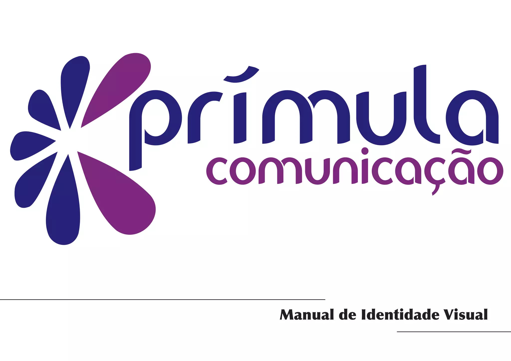 O documento descreve os elementos da identidade visual da empresa Prímula Comunicação, incluindo o logotipo, cores, tipografias, aplicações em papelaria e documentos.