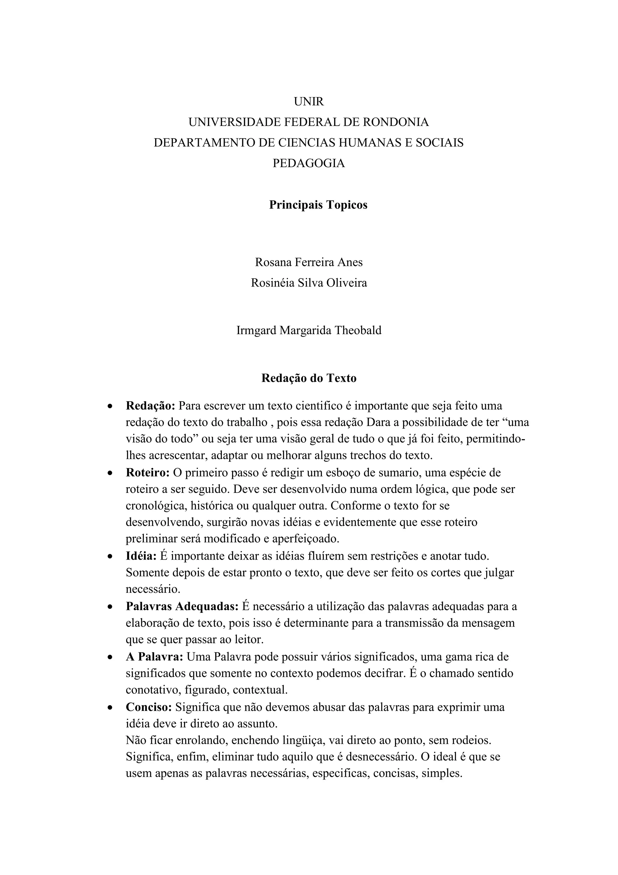 Este documento fornece diretrizes para a redação de um texto científico em três frases. Primeiro, recomenda-se fazer uma redação geral do trabalho para ter uma visão completa. Em seguida, deve-se desenvolver um rascunho do sumário em uma ordem lógica. Por fim, enfatiza-se a importância de usar palavras adequadas e concisas para transmitir claramente a mensagem ao leitor.