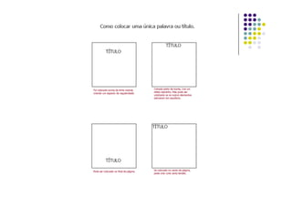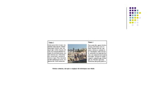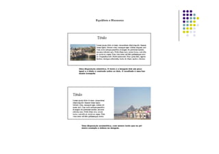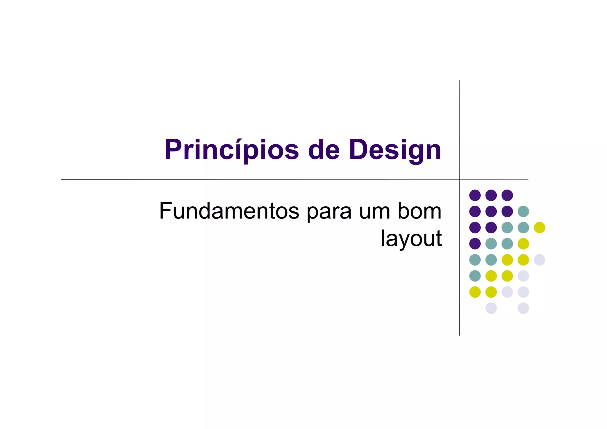 O documento fornece diretrizes sobre layout e design de publicações, cobrindo tópicos como formato, uso de espaço, equilíbrio entre elementos visuais e textuais, e exercícios práticos de composição. É destacada a importância de determinar o formato, considerando custo e tipo de publicação, e de pensar na distribuição ideal de elementos visuais e textuais de acordo com o objetivo.
