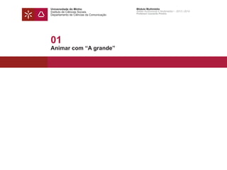 Este documento descreve os princípios básicos e clássicos de animação. Apresenta exemplos de como conceitos como timing, squash and stretch, antecipação, arrasto e acção sobreposta podem ser aplicados para criar movimentos animados realistas. O professor também discute como compreender o comportamento físico dos objetos no mundo real é fundamental para animá-los de forma credível.