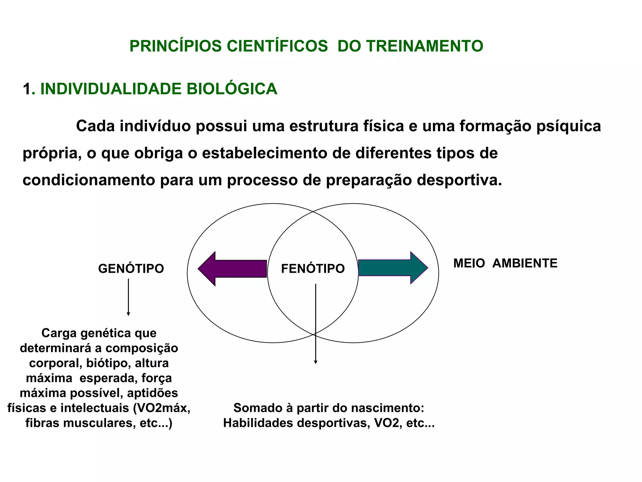 2. É explicado que cada indivíduo responde de forma única ao treinamento devido a fatores genéticos e ambientais. O organismo se adapta aos estímulos de treinamento através de mecanismos compensatórios.